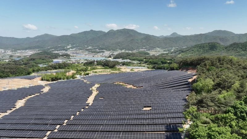 步入郁郁葱葱,群山环绕的江原道山间,可以看到一座24MW的地面光伏电站,科士达KSG系列115kW组串式逆变器正在此高效运行,搭配双面组件,实现绿电增益与低碳发展双丰收。