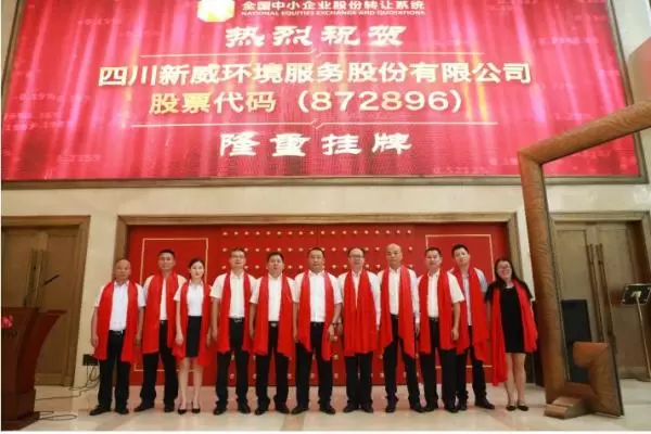 近日,以商业清洁服务为主营业务的四川新威环境服务股份有限公司(公司简称:新威环境,证券代码:872896)挂牌仪式在全国中小企业股份转让系统举行。