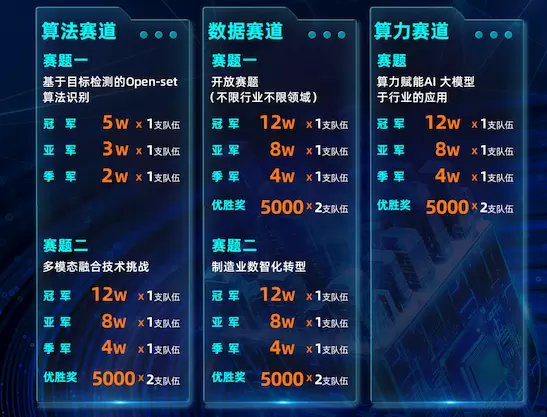 本次大赛设立了三个赛道,涵盖算法、数据、算力等多个领域: