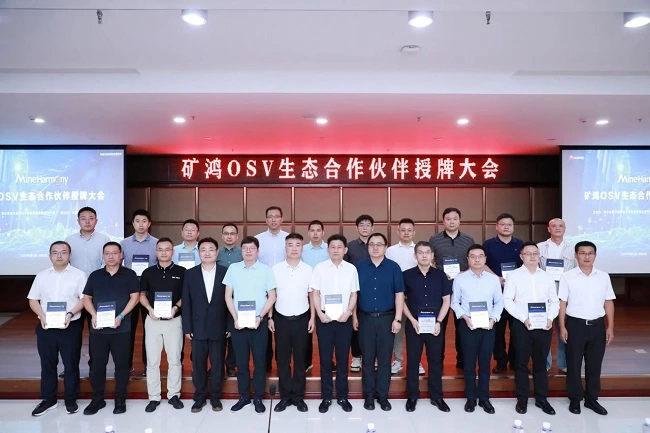 本次矿鸿OSV生态合作伙伴授牌大会组织了矿鸿相关产业政策、矿鸿产品与服务、矿鸿商务模式等重点议题分享。鄂尔多斯工业和信息化局党组成员&市工业发展促进中心主任哈斯其劳、鄂尔多斯空港物流园区生态应急办主任郝建忠、鄂尔多斯市数字经济发展投资有限责任公司副总经理陈海峰、华为三方使能产品领域总经理杨霖、华为油气矿山军团COO宫玉庆及签约矿鸿 OSV的企业代表们共同出席了会议。