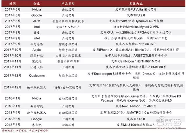 ▲AI芯片新品竞相发布(自2017年5月以来发布的 AI 芯片一览)