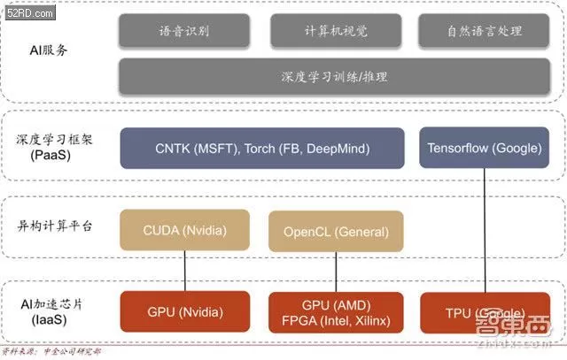 目前,人工智能产业链中,包括提供 AI 加速核的 IP 授权商,各种 AI 芯片设计公司,以及晶圆代工企业。