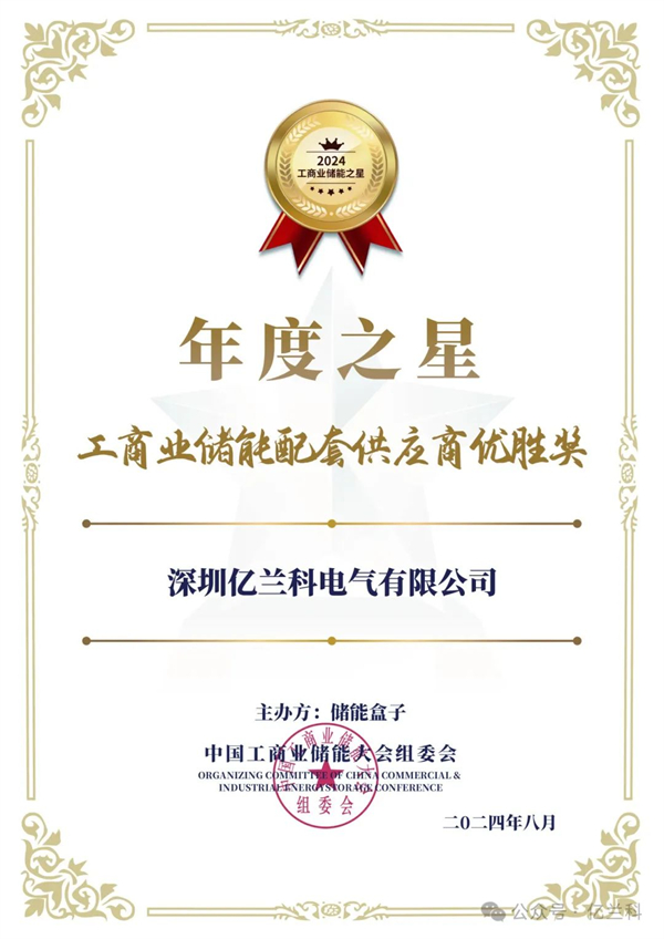会议期间2024中国工商业储能年度之星颁奖典礼同步进行,亿兰科产品方案受到行业的认可,被授予“工商业储能配套供应商优胜奖”。