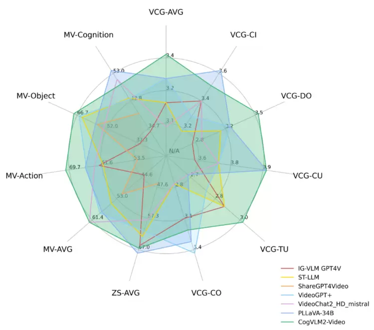 多模态大模型CogVLM2-video实现视频生成文本能力,支持2K序列长度、224×224分辨率的视频理解以及中英文回答等功能。测试实践显示,CogVLM2-video在多个视频问答任务上达到了state-of-the-art SOTA模型)的性能,并能够实现一分钟内的视频理解,在几个主流性能测试数据集(MVBench, VideoChatGPT-Bench and Zero-shot VideoQA datasets)中,CogVLM2-video也表现不俗,展现出全面竞争力,同时在多类主要指标上完成对其他模型的领先。