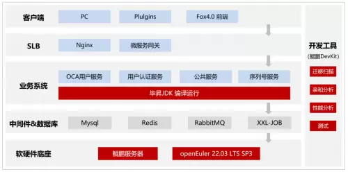 鲲鹏平台高吞吐、低时延、低能耗、高安全等优势,能够很好的满足上述金融业务的要求,此外还提供完善的开发工具生态,能快速完成面向鲲鹏的开发、编译调试和性能优化;基于此,宇信科技选择携手鲲鹏共同推进金融科技自主创新实践。2024年2月,宇信科技宣布与鲲鹏开启原生开发合作,8款核心软件将基于鲲鹏服务器、openEuler开源操作系统、鲲鹏开发套件DevKit、鲲鹏应用使能套件BoostKit进行原生开发,实现1套代码+1条流水线->多平台版本,并持续发布性能更优的鲲鹏商用软件版本。目前,统一监管报送平台 V5.0、分布式企业网银系统 V1.0、远程经营服务平台V1.0三款产品已完成鲲鹏原生开发,并顺利获得Kunpeng NATIVE证书。