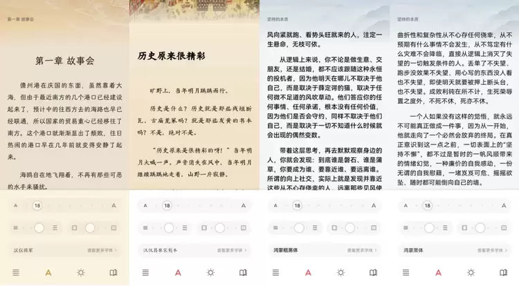 例如,想要趁着暑假在华为阅读重刷最近大火的《庆余年》,可以将字体切换为饱含传统基因和现代设计感的“汉仪将军”,可以更好展现这部作品中的历史厚重感和现代气息;如果想要通过《明朝那些事儿》感受大明王朝跌宕起伏的兴衰走向,可以选择“汉仪昌黎宋刻本”这种更偏古籍风格的字体,这款字体笔画纵横清晰,又不失自然古趣,让整本书的历史感扑面而来;对于上班族来说,《强者思维》这种自我提升的书籍非常适合暑期充电学习,字体方面则很适合用华为阅读专有的“鸿蒙粗黑体”或“鸿蒙黑体”,更显严谨工整,强化记忆。