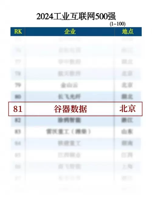 - 谷器数据入选2024工业互联网500强榜单