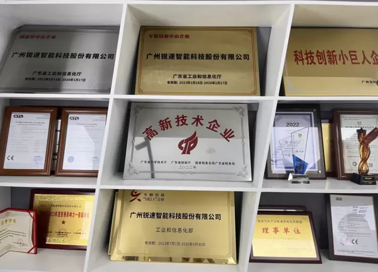 广州锐速智能科技股份有限公司成立于2006年,注册资本5100万元,是广东省高新技术企业。2016年,公司在新三板挂牌上市,股票代码839697,连续三年进入新三板创新层,是广州市首批“三个一批一两高四新”企业,先后获得“广州市科技创新小巨人”“广东省工程技术研究中心”、“广州市企业研发机构”荣誉称号。公司是广东省机器人协会创会理事会员,并与华南理工大学合作成立了机器视觉技术研发联合实验室,公司拥有各类专利54项。
