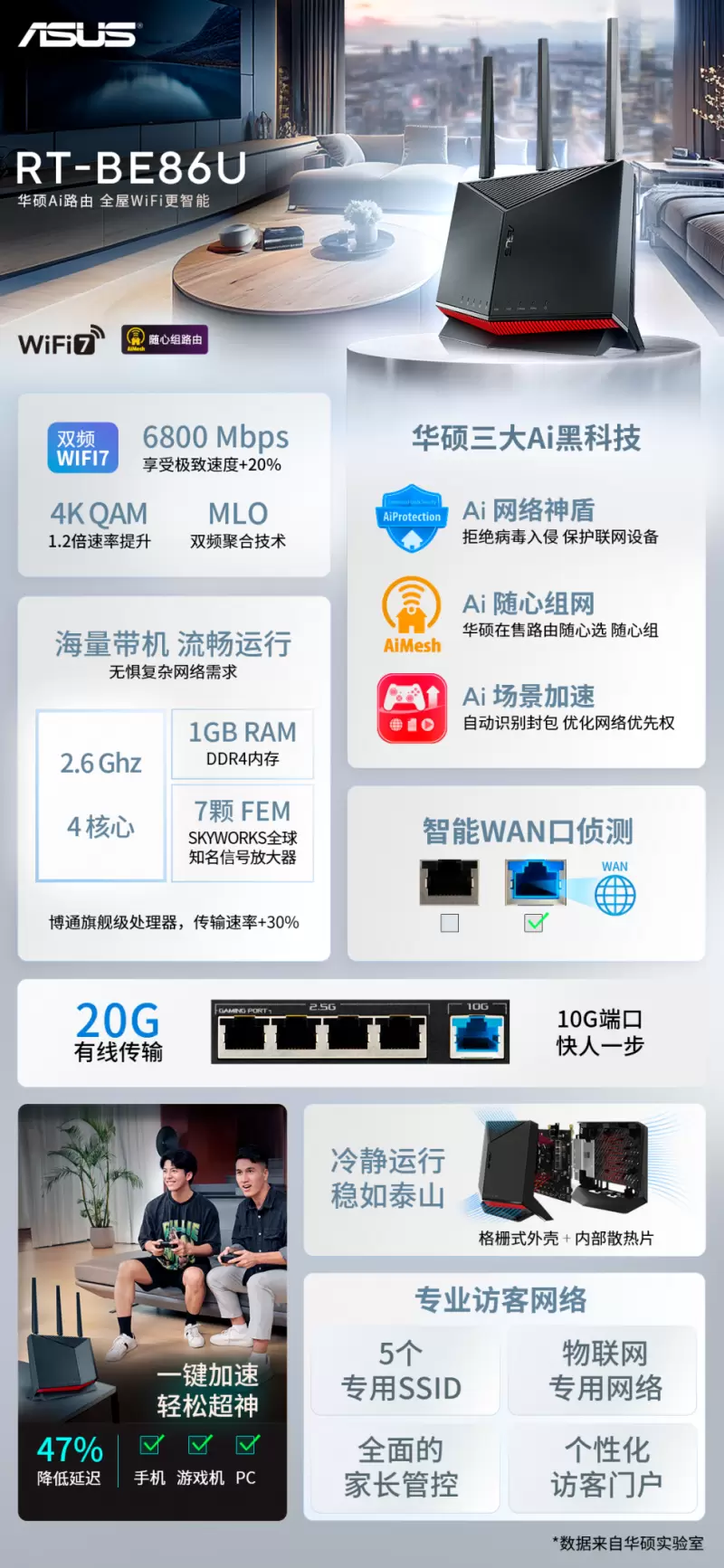 - 家庭网络升级选它!华硕RT-BE86U:假期宅家必备的WiFi7高端路由器