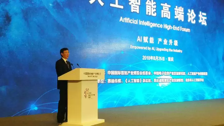 2018年8月25日,在中国国际智能产业博览会举办期间,“人工智能高端论坛”在重庆悦来国际会议中心顺利召开。论坛由中国国际智能产业博览会组委会、中国电子信息产业发展研究院和人工智能产业创新联盟共同主办,赛迪传媒、《人工智能》杂志社、重庆虚拟现实产业发展联盟、重庆市人工智能学会共同承办。来自工业和信息化部、重庆市等有关领导,以及国内外人工智能领域的技术权威和企业精英参会。