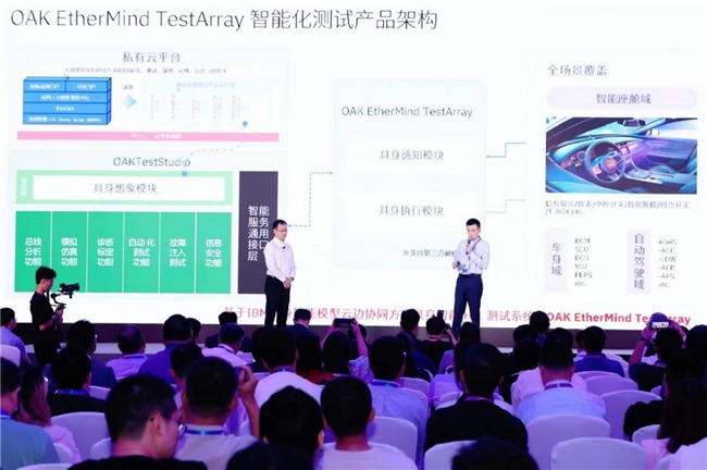 在活动现场,新一代汽车电子全流程解决方案供应商橡豫智能与IBM联合发布了面向智能制造、汽车制造、智能机器人等领域的最新共创成果,即边云协同的大模型管理平台和车企新一代研发支撑平台。此外,橡豫智能基于上述资产成功打造了新一代的OAK EtherMind TestArray智能化汽车测试平台。