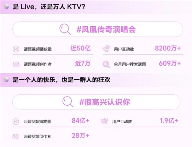人生旷野上,一场音乐表演总是能给人留下最真实和快乐的回忆。凤凰传奇演唱会上,万人齐唱的盛况令人惊叹,各类热梗在抖音平台疯传,相关话题视频播放量近50亿,这也吸引到更多演出票务商家入驻抖音电商。5 月,抖音上线“很高兴认识你”音乐会电商直播,豪华明星阵容吸引来数千万观众,同时这一全新带货模式也为商家带来销量增长。