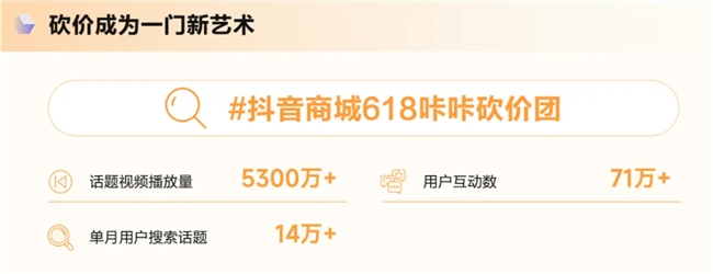 当未来充满不确定性时,人们越来越注重理性消费,“质价比”成为主要决策因素。618大促期间,抖音电商推出“咔咔砍价团”策划,好物测评和价格机制谈判相结合,让砍价也成为一门艺术。