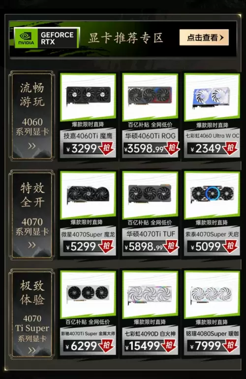 显卡是游戏运行是否流畅的关键问题。在京东《黑神话:悟空》“保姆级”专业推荐活动中,玩家能够一目了然地看到流畅玩的4060系显卡专区、特效全开的4070系显卡专区、极致体验游戏的4070Ti Super显卡专区,有需求的玩家也可根据自身需求和喜好直接入手不同品牌的40系显卡产品。