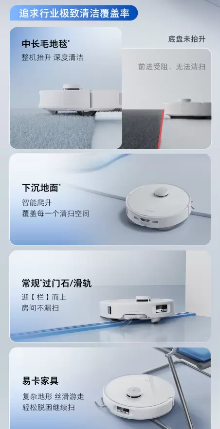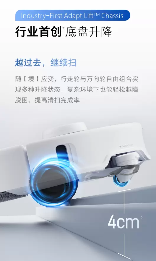 行业首创底盘升降,实现最高4cm轻松越障,解锁无界清洁版图