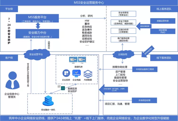 南城云趣“MSS网络安全运营中心”的核心就是,筑牢中小企业网络安全防线,提供7*24小时线上“托管”+线下上门服务,兜底企业网络安全,为企业数字化转型升级赋能。
