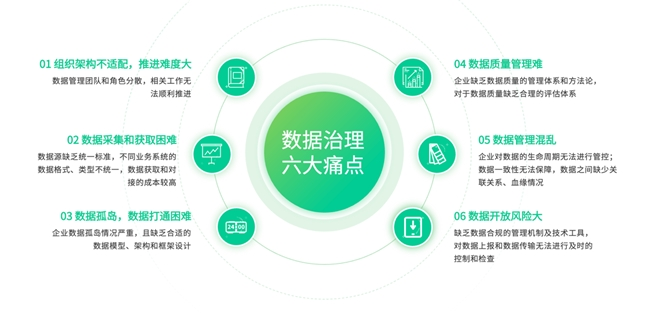 企业缺乏数据质量的管理体系和方法论,对于数据质量缺乏合理的评估体系,缺少打分机制,无法诊断数据质量问题的严重性,导致质量问题大量积压对业务造成严重影响;另外,企业无法对数据质量做主动监控,只能在发现问题后亡羊补牢,大大增加了企业的数据维护成本。
