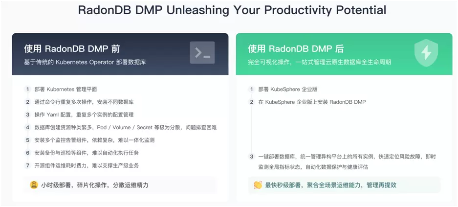 RadonDB DMP,全新一代企业级云原生数据库管理平台,实现更智能、更高效的数据库管理,引领企业迈向“云原生 + AI”数据管理新时代!
