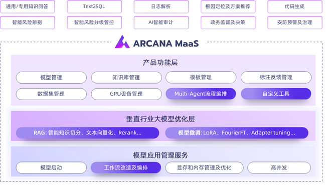 在实际应用中,企业和组织往往面临着复杂的业务需求和多样化的决策场景。鼎茂科技自研的一体两翼的ARCANA平台正是为这类复杂需求而设计开发的。它包含ARCANA AIOps 数据智能分析决策平台和ARCANA MaaS 大模型决策服务平台,以此为客户提供更全面、高效的数据分析和决策支持。例如,在企业的数字化转型过程中,既需要通过 AIOps 平台确保 IT 系统的稳定运行和高效管理,又需要借助 MaaS 平台的大模型能力进行业务创新和战略决策。