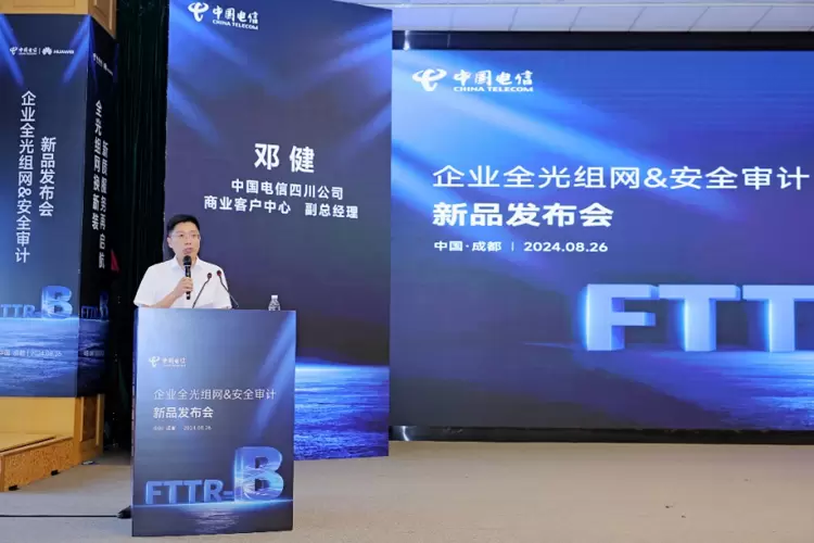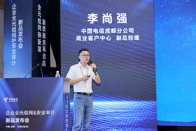 [中国,成都,2024年8月26日]由中国电信集团有限公司成都分公司(以下简称“成都电信”) 在蓉城举办“企业全光组网&安全审计新品发布会”,大会以“全光组网换新装 新质服务再启航”为主题,汇聚了通信行业技术专家、渠道代表,共同探讨了企业数字化转型中网络基础设施的重要作用,并见证了数字通信与安全领域的重大创新成果。