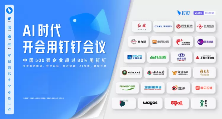 公开资料显示,钉钉会议已经广泛服务新能源、制造、零售、金融、物流、互联网等行业,包括宁德时代、云南白药、安踏集团、顾家家居、申通快递、人民日报、一汽集团、民生证券、微博等众多行业的领军企业。