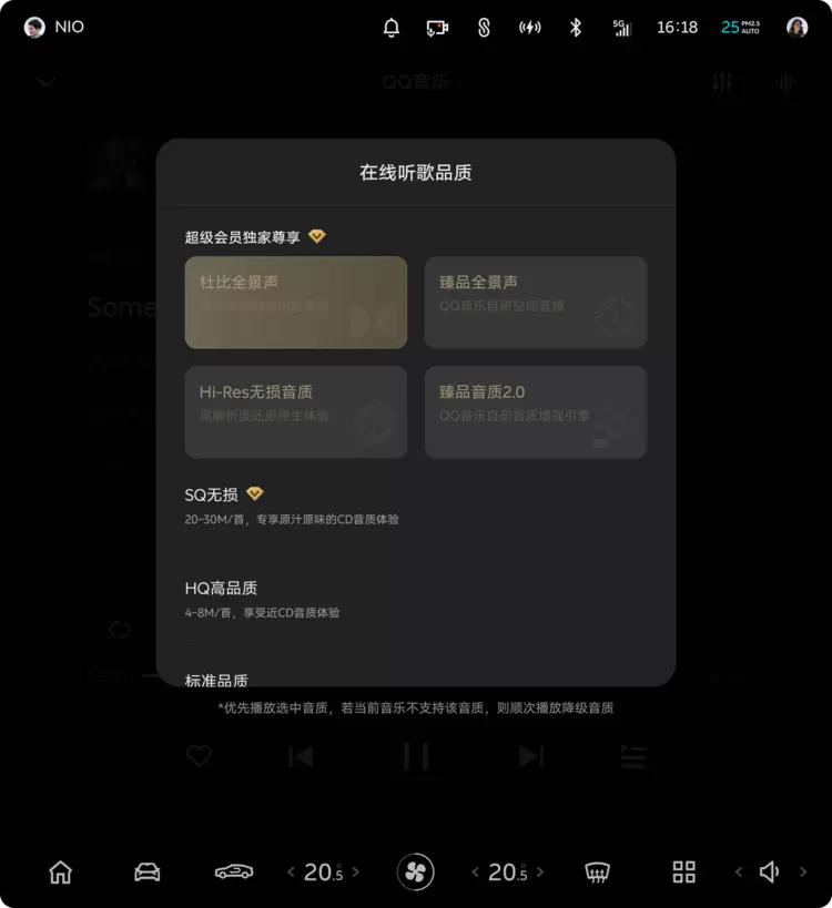 除QQ音乐自研音质外,本次“上车”的还有杜比全景声和Hi-Res无损品质两大业界顶尖音质。杜比全景声以无与伦比的清晰度和层次感呈现丰富细节,QQ音乐作为首家支持杜比全景声的国内音乐平台,首发上车便搭载于蔚来。本次精选超过20万首歌曲的杜比曲库,涵盖流行、古典、摇滚、电子、说唱等各种音乐类型,全面满足了车载用户高品质、多元化、沉浸式听歌的需求。此外,QQ音乐的Hi-Res无损品质,最高解析度可达192kHz/24bit,并支持数百万首歌曲。