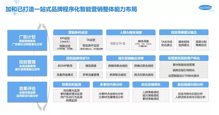 ReachMax是一个一站式智能投放管理平台,通过多触点的打通与融合,帮助品牌主在多个触达场景中提升效率。其精准投放功能,依托多源数据和先进的流量优化模型,帮助品牌主精确定位目标受众,提升业务效率。同时,平台的频次控制、素材管理、效果监测和流量筛选功能,为品牌主提供了全方位的营销优化解决方案。
