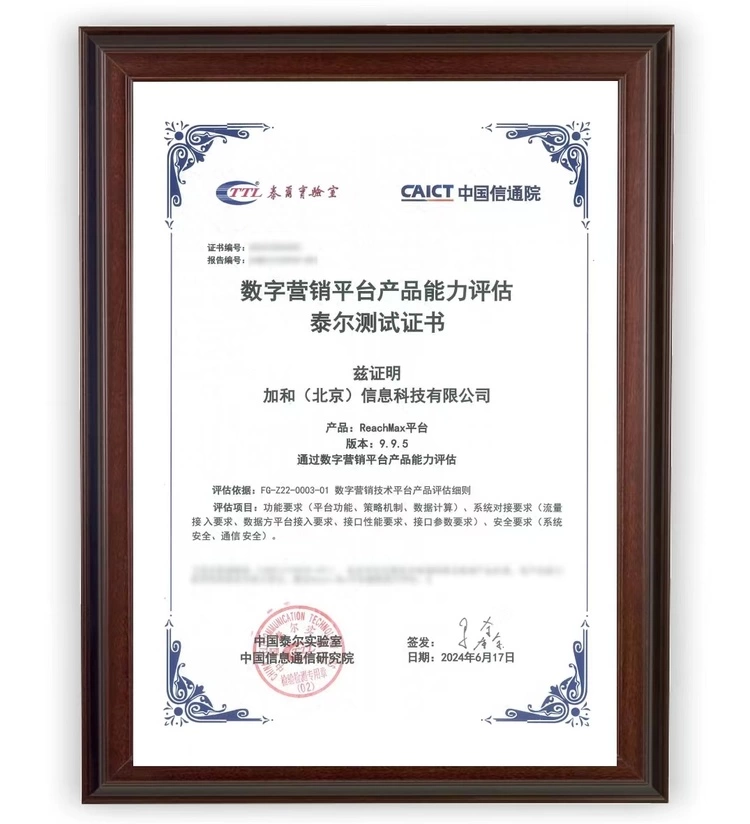 ReachMax平台的这一认证,不仅是对其技术实力的认可,也是对其在数字营销领域专业性的肯定。加和科技将继续推动行业规范化和技术进步,助力企业在数字营销领域取得更大的成功。