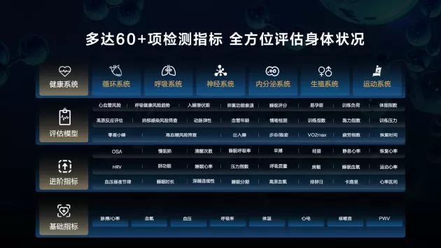 此外,玄玑感知系统扩展了检测范围,涵盖60多项检测指标,支持多项健康系统的监测。通过心率数据和自主神经序列分解算法,系统能评估用户的情绪状态和压力值,帮助用户实现身心健康。