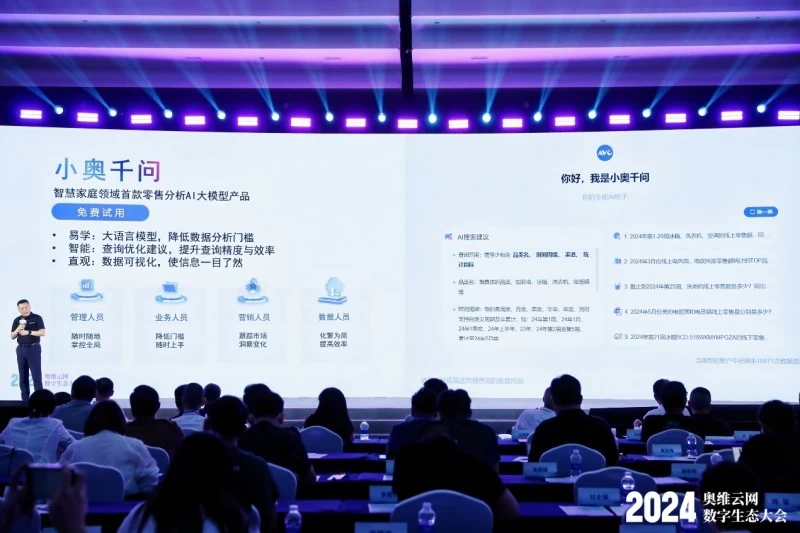 8月22日,在杭州召开的奥维云网(AVC)2024数字生态大会上,奥维云网(AVC)对外正式发布了智慧家庭领域首款零售数据分析大模型——“小奥千问”(点击试用https://ai.avc-mr.com/index),一款可以直接实现数据查询的智能AI工具。