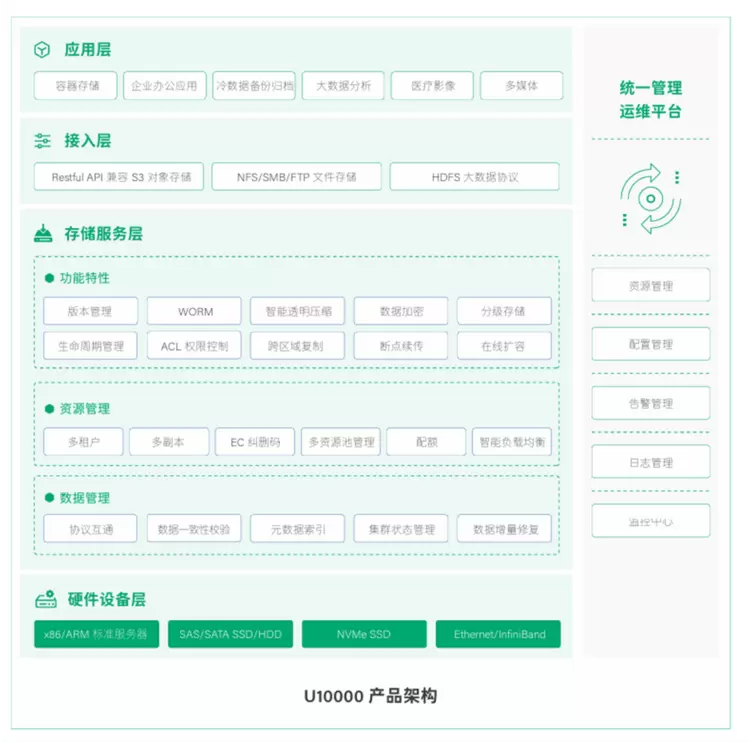 青云 U10000 存储赋予您前所未有的数据存储管理体验。无论是即时的空间健康诊断、精准的性能监控,还是深度的资源资产洞察,皆能助力您从容驾驭海量非结构化数据,实现数据价值的最大化释放,为企业的数字化转型注入强劲动力。