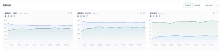 提供集群级别的带宽、IOPS、延迟数据,直观反映出整个存储系统的吞吐能力、处理速度以及响应时间,帮助您精准评估系统工作负载的能力。