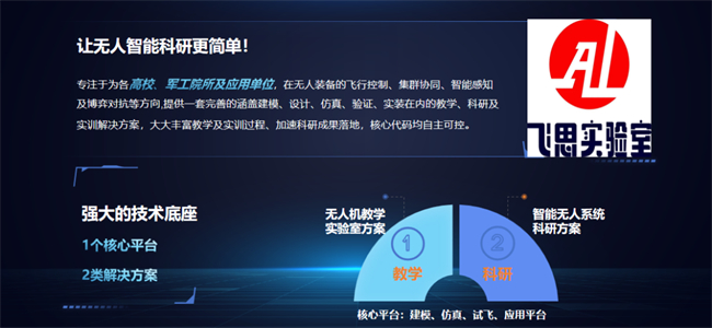 除了无人系统装备,卓翼智能在2018年创立了飞思实验室,提供智能无人系统的开发工具,针对智能无人系统的研发、设计、仿真以及测试等环节,提供飞行控制、视觉导航、集群协同、智能博弈技术的一体化设计及开发平台。