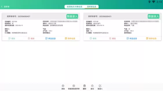 采样单数据录入: