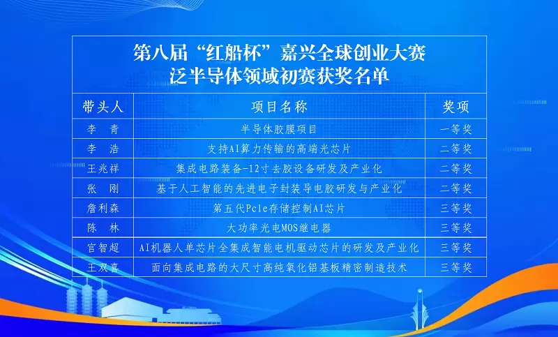 围绕技术含量高、产业化基础好、发展潜力大、落户意向强等维度,在18个入围项目中最终评选出第八届“红船杯”嘉兴全球创业大赛泛半导体领域初赛一等奖项目一名,二等奖项目3名,三等奖项目4名,在规定时间内落户并符合条件的,可享受200万元的项目资助。其中一等奖及二等奖项目将参加“红船杯”嘉兴全球创业大赛总决赛,角逐更高的项目资助。
