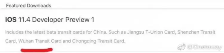 截图显示,iOS 11.4将增加对江苏、深圳、武汉和重庆等地区的公交卡的支持,当然,该截图的真实性还有待证实。