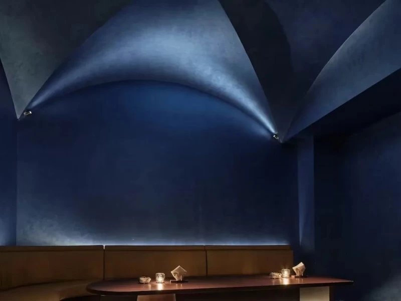 步入走廊,仿佛穿越一条神秘的山洞,柔和的光线与点缀的跳跃感交织,营造出一种宁静与奇幻并存的氛围,引领每个顾客,从喧嚣的城市街道转入一个安静的、与自然和谐共处的场景。