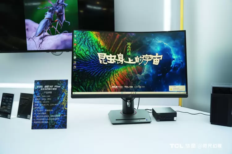 数码摄影人通过显示器来评审、欣赏数码影像的,显示器对于摄影人来说无疑是重要的“生产力工具”。展会现场,TCL华星与华硕联合打造的ROG绝影32 Plus XG32WCMS,不仅颠覆了大家的视觉感官,也为更多艺术创作者提供了前沿显示技术加持的高效创作体验。其搭载TCL华星HVA面板的31.5"曲面电竞屏,屏幕曲率为R1500,屏幕比例为16:9,广阔视角与曲面大屏能打造环绕沉浸式的视觉体验;具有2560x1440 的高分辨率,支持1ms GTG灰阶响应时间和280Hz原生刷新率,高帧率+低延迟,确保画面清晰且流畅,助力创作者更自如掌握全局动态。