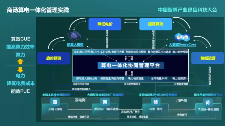 随着大模型对算力需求的剧增, “算电一体化协同”势在必行!去年12月,国家发改委等部门联合印发《深入实施“东数西算”工程 加快构建全国一体化算力网的实施意见》明确提出,2025年底,算力电力双向协同机制初步形成,国家枢纽节点新建数据中心绿电占比超过80%。作为国内AI基础设施服务的领导者,商汤大装置积极推进训推一体、算电协同等创新技术的应用,并取得显著成效: