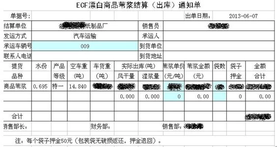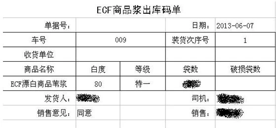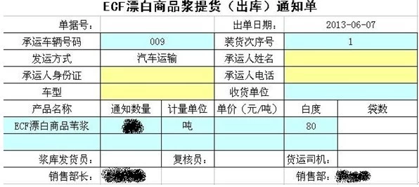 1、首先销售部根据用户的购买要求开出提货单据,售浆系统进入传单流程,将此信息通过局域网传送给过磅部门、质检部门、仓储部门。