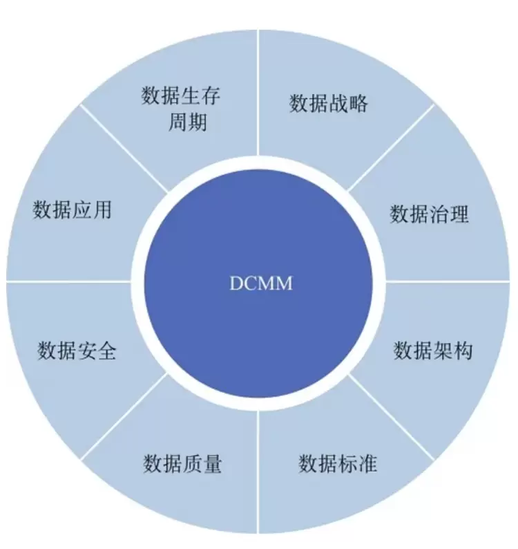 数据管理理论日趋成熟,将指导行业全面开展数据管理能力建设。Gartner公司率先在2008年提出了企业信息管理成熟度模型(EIM Maturity Model),成为数据管理理论的前身。该模型诞生于信息化阶段,将数据管理纳入企业信息架构,强调数据管理服务于企业信息技术基础设施建设和项目管理。国际标准化组织(International Organization for Standardization,ISO)于2008年推出ISO/IEC 38505-1《基于ISO/IEC 38500的数据治理》,从主体评估、指导和监督阐述数据治理过程。2014年后诞生的企业数据管理能力成熟度(Data Management Maturity,DMM)模型和数据管理能力评价模型(Data management Capability Assessment Model,DCAM)聚焦于数据本身,结合行业数据管理实践,归纳总结数据管理的关键环节,覆盖组织、技术、制度、流程、操作等多个方面。如图1所示,我国在综合考量国内外相关理论与实践的基础上,紧密结合国内数据行业的鲜明特色与成长需求,成功创建了国内首个数据能力成熟度评估体系——《数据管理能力成熟度评估模型》(Data management Capability Maturity Model,DCMM),并于2018年3月正式公布。这一模型为数据产业的稳健与有序发展提供了坚实的支撑与明确的指导。该标准明确界定了数据管理涵盖的8个核心能力域,即数据战略、数据治理、数据架构、数据应用、数据安全、数据质量、数据标准以及数据生存周期管理,从组织结构、制度规范、操作流程和技术实施4个方面全面评估企业的数据管理能力。与国际数据管理理论框架相比,DCMM更侧重于数据标准、数据安全和数据应用方面的考量,更好地适应我国数据管理的现实情况,满足我国数据管理能力建设的实际需求。