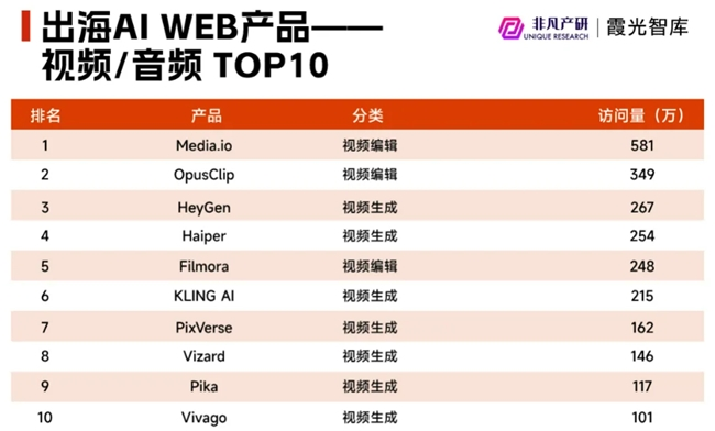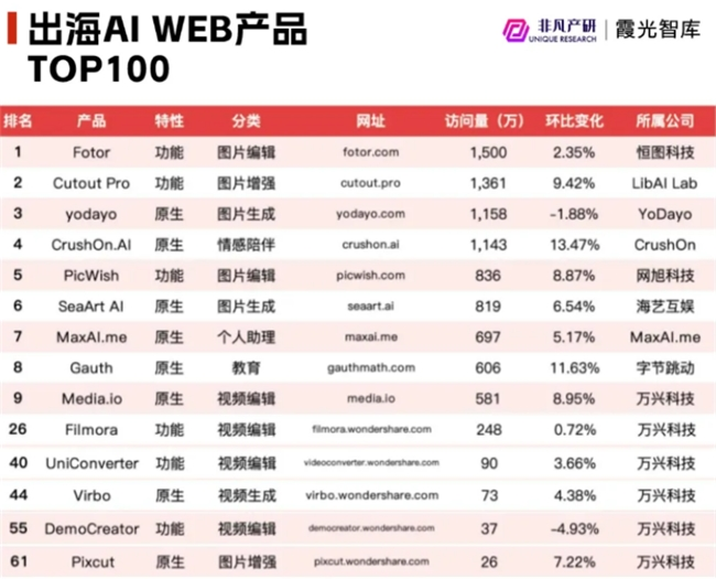 非凡产研发布中国AI出海WEB产品TOP100 万兴科技旗下六款产品上榜