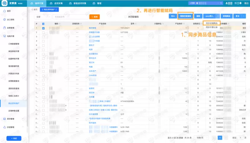 商品管理。自动匹配商品简称、关键词、商品编码,轻松应对电商大促,省时省力。支持组合装商品维护多个开票商品,自动匹配开票商品明细,无需人工匹配。