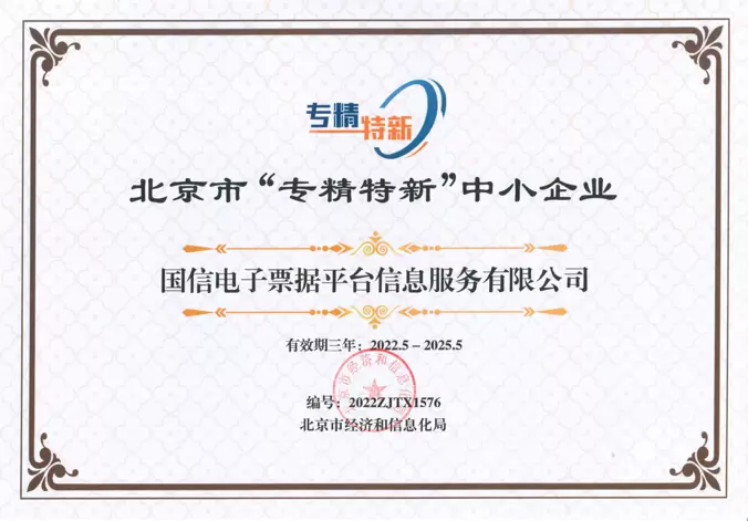 2022年5月,国票信息通过北京市经济和信息化局北京市2022年第三季度“专精特新”中小企业评审,正式获评为北京市“专精特新”中小企业。