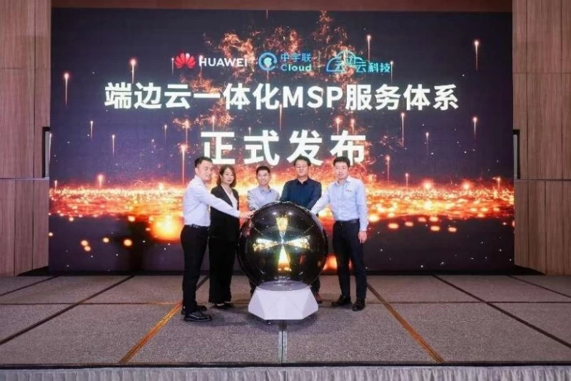 之后,会议迎来高潮,华为中国政企物流零售总经理 孔维明、中宇联总经理 康俊燕先生、华为上海政企数通解决方案销售部长 王鹏、中宇联副总经理 杜斐、华为上海政企物流零售业务拓展部部长 齐舟五人一同上台,共同发布端边云一体化MSP服务体系!