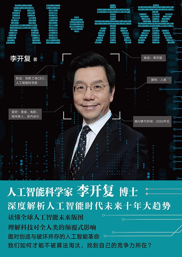 即将于9月2日上市的新书,名为《AI·未来》,在新书中,李开复凭借对全球科技业与人工智能行业的深入了解,为读者描绘了人工智能新世界的样貌、未来人工智能对社会的冲击以及在人工智能时代我们的应对策略。