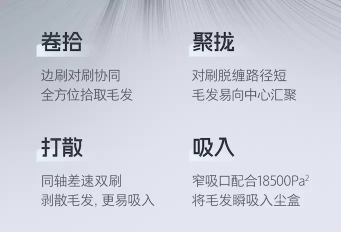 首创0缠清扫系统,18500Pa飓风吸力,毛发清洁更省心