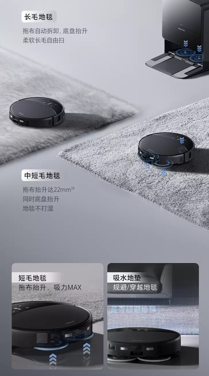 行业首创底盘升降,实现最高4cm轻松越障,解锁无界清洁版图