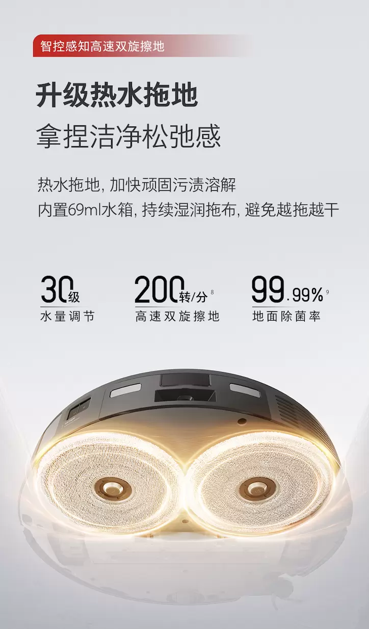 智控感知高速双旋擦地,深度去污更安心,拿捏洁净松弛感