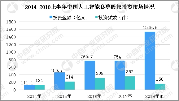 近年来,中国私募市场中人工智能企业投资频数持续攀升,数据显示,2017年人工智能企业投资数量有352件,投资金额为754亿元。